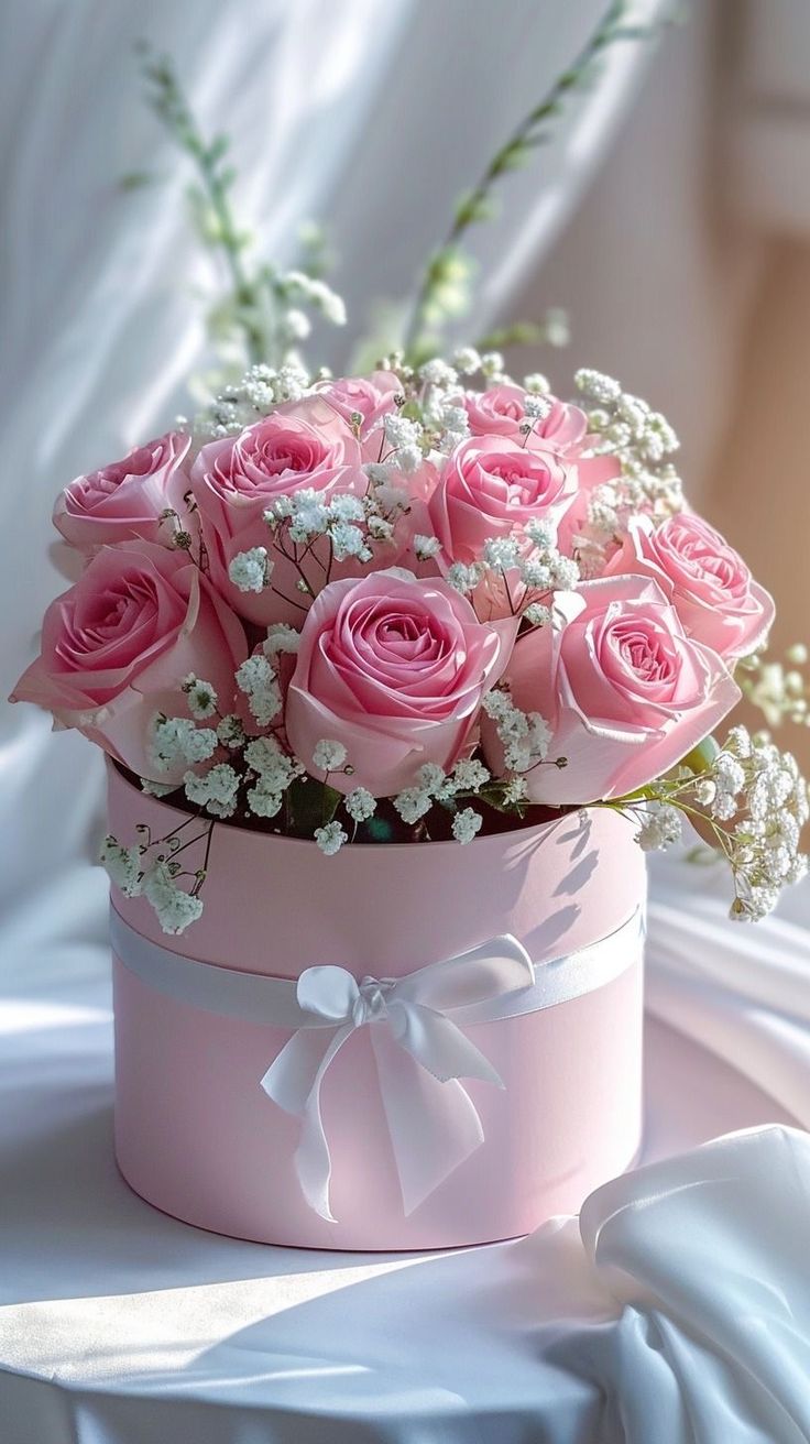 Un delicado BOX EN ROSAS Y FLORES NATURALES por san Valentín, con un lindo follaje.