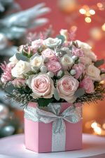 Un delicado BOX EN ROSAS Y FLORES NATURALES por san Valentín, con un lindo follaje.